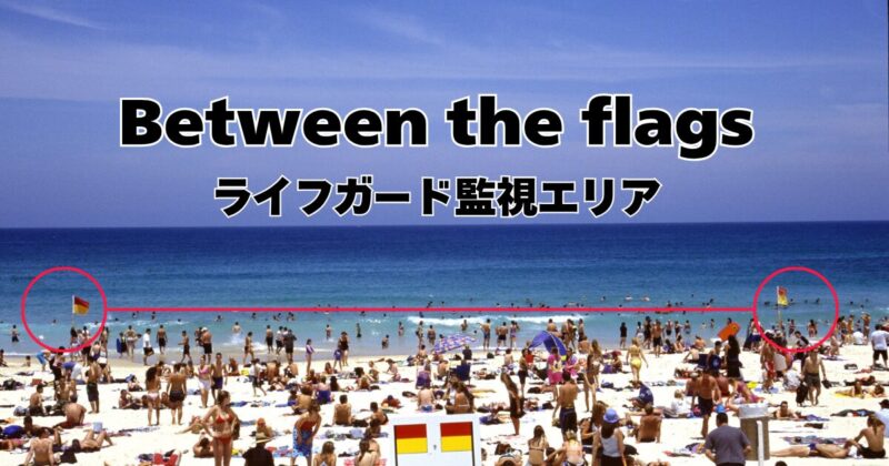 必ずライフガードが監視している、赤と黄色の旗の間(between the flags)で遊びましょう。