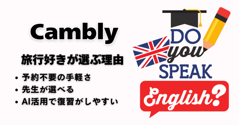 数あるオンライン英会話の中でも、なぜ旅行好きや忙しい大人にCamblyが支持されるのでしょうか。